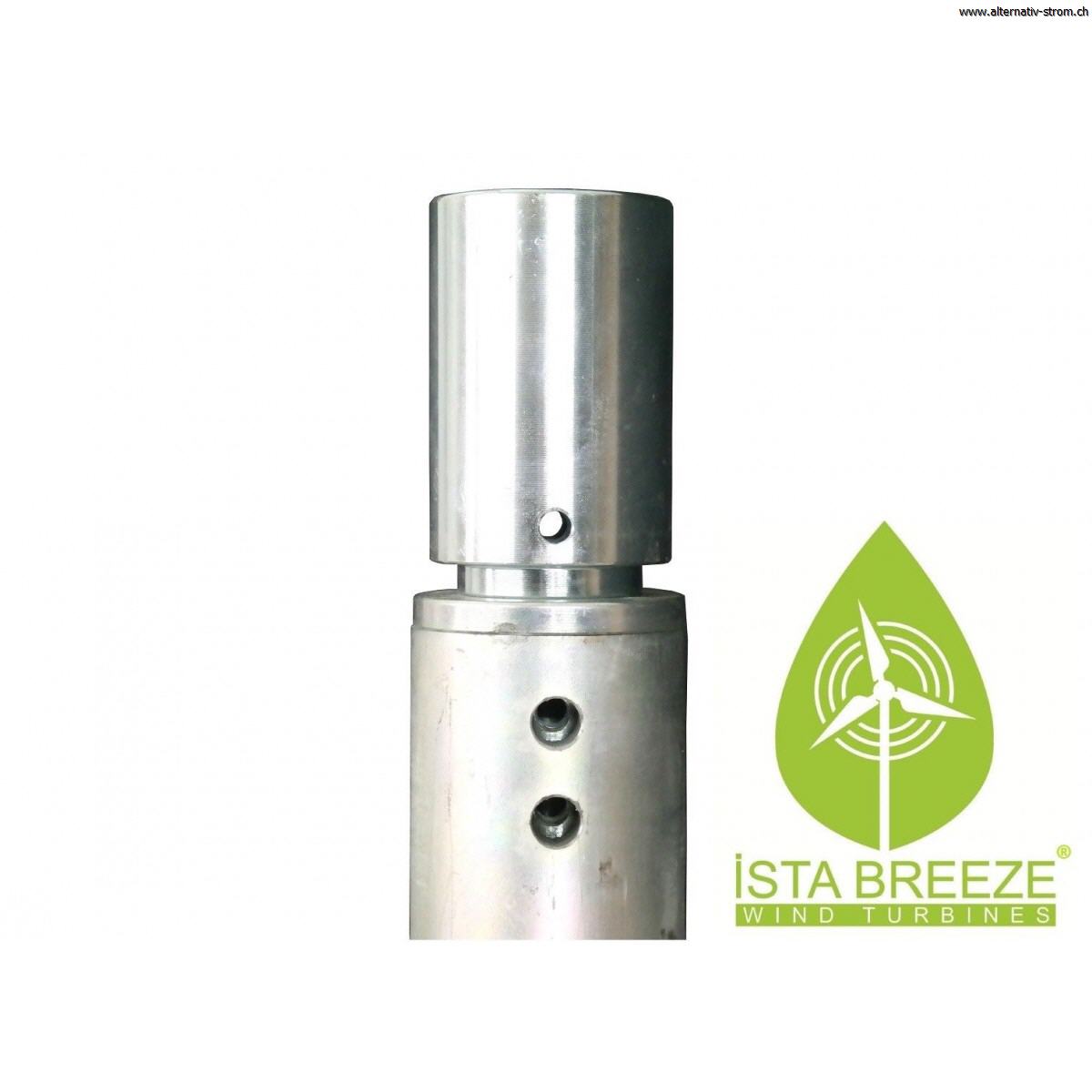 Adapter Air Speed für Mast iSTA-BREEZEMast Adapter für AirSpeed Windgeneratoren- Gesamthöhe: 140mm- Gewicht: 1,7kg- Material: Stahl (galvanisch verzinkt)- Schellenverbindung (WINDGENERATOR): 53mm- Steckverbindung: 36,9mm
